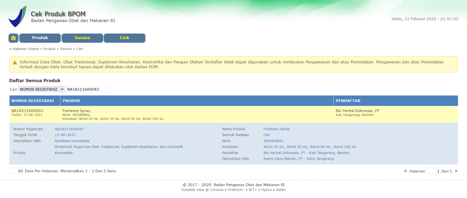 Memiliki Sertifikat Halal dari MUI yang menyatakan produk Feminine Spray telah lulus sertifikasi. Produk yang tidak memiliki izin BPOM bisa saja mengandung bahan yang berbahaya. Produk Feminine Spray telah memiliki izin BPOM.